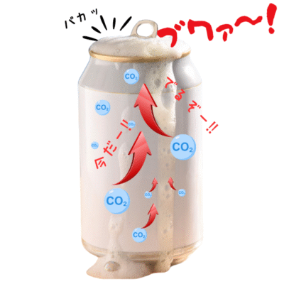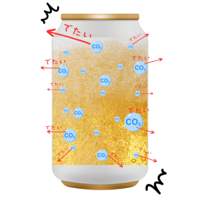 溶けていたCO₂は、小さな泡となって外に出たがります。